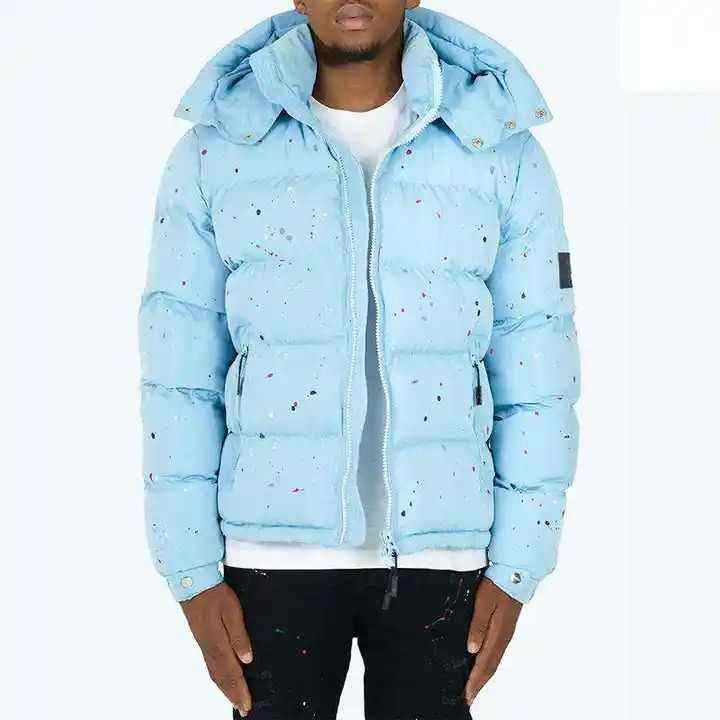 Chaqueta acolchada de alta calidad personalizable para hombre, cuello levantado, tela de lona de nailon y poliéster duradero, diseño acolchado de burbujas para invierno