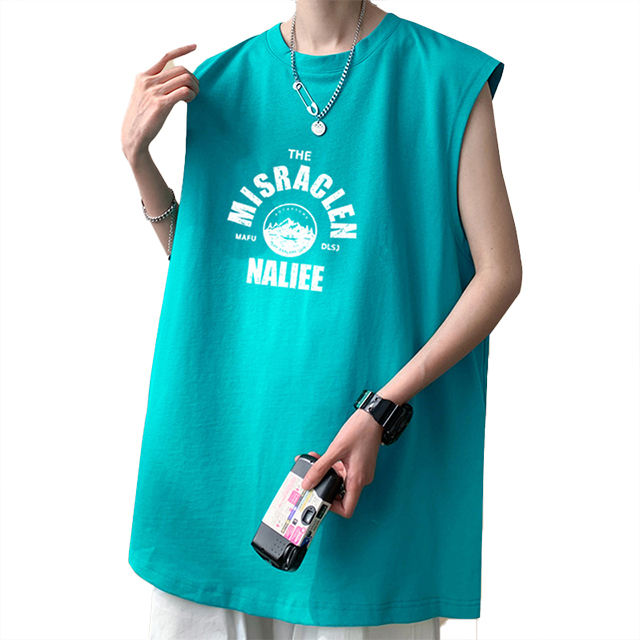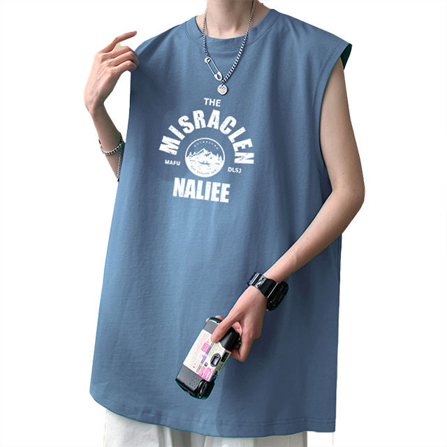 Camiseta Deportiva Holgada Personalizable para Hombre, Estilo Veraniego, Color Blanco Sólido, Sin Mangas, de Algodón, para Gimnasio
