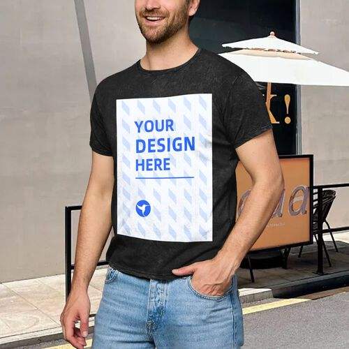 Camiseta personalizable de manga corta lavada de algodón Vintage para hombre, Camiseta de cuello redondo, ajuste Regular, 100% de seda, 230G, tejido transpirable pesado en blanco