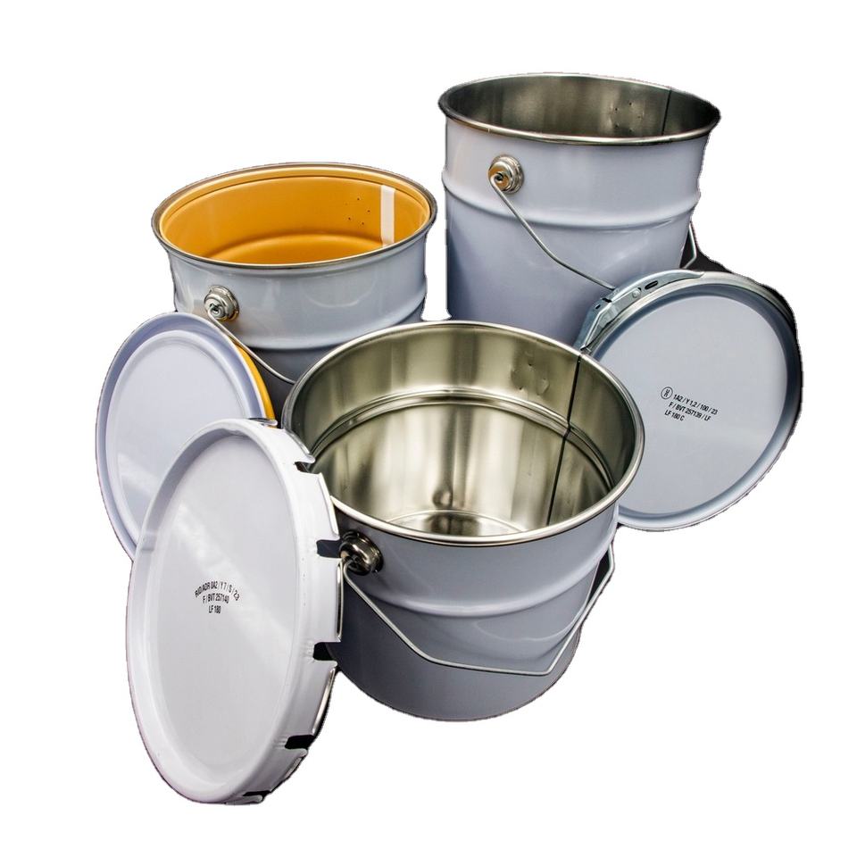Cubos cónicos de hojalata personalizables de 180 mm con tapa a presión, tapa de orejeta o tapa de pestillo de anillo y capacidad total de 3,4 hasta 5,7