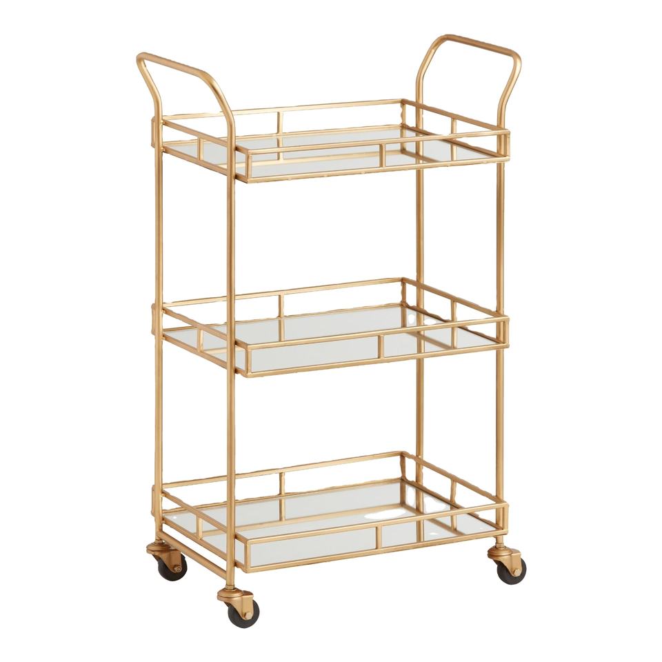 Carrito de barra rodante dorado de 3 niveles de Metal y vidrio MOQ 25 uds, carrito de servicio, carrito con ruedas, mesa de centro, muebles de sala de estar de Metal