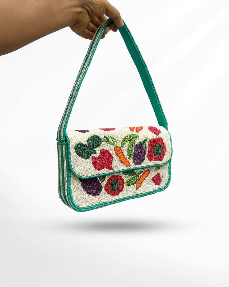 Bolso de mano personalizable con bordado de cuentas multicolor, logotipo personalizado, diseño personalizado, tipografía, para mujer, de alta calidad, exportado.