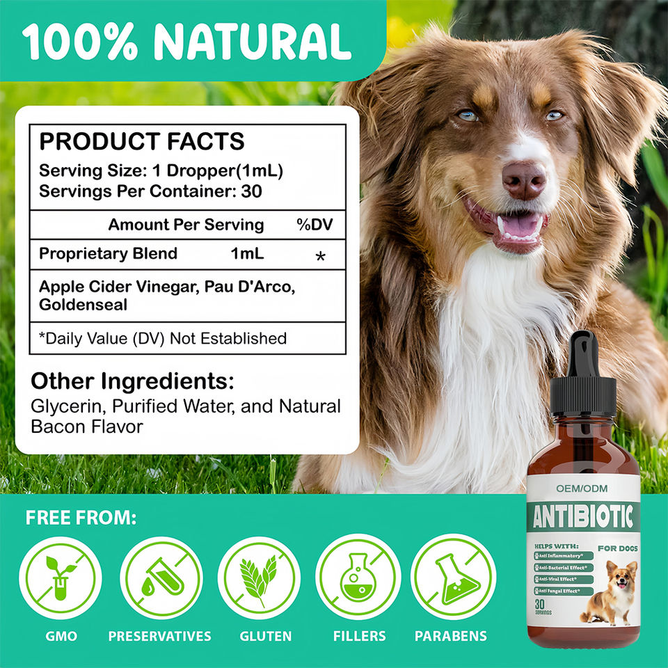Gotas de antibióticos naturales personalizables para perros, suplementos antiinflamatorios para perros que apoyan el alivio de alergias, cuidado de la salud de las mascotas