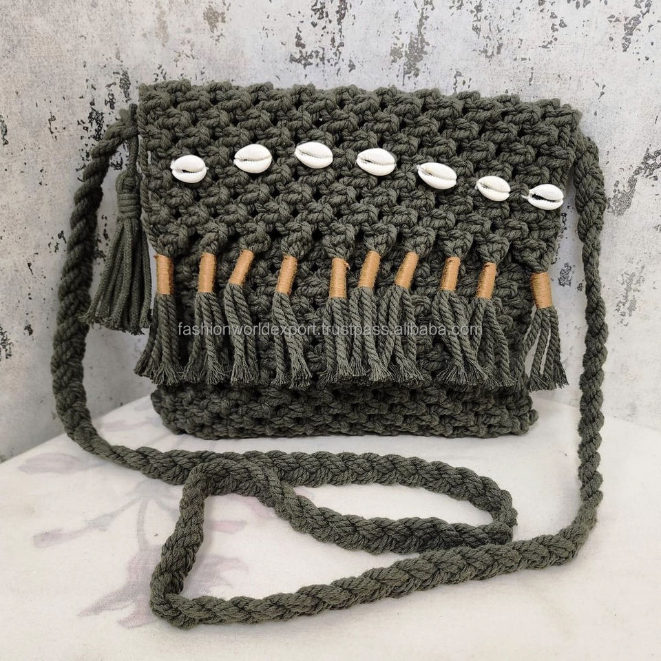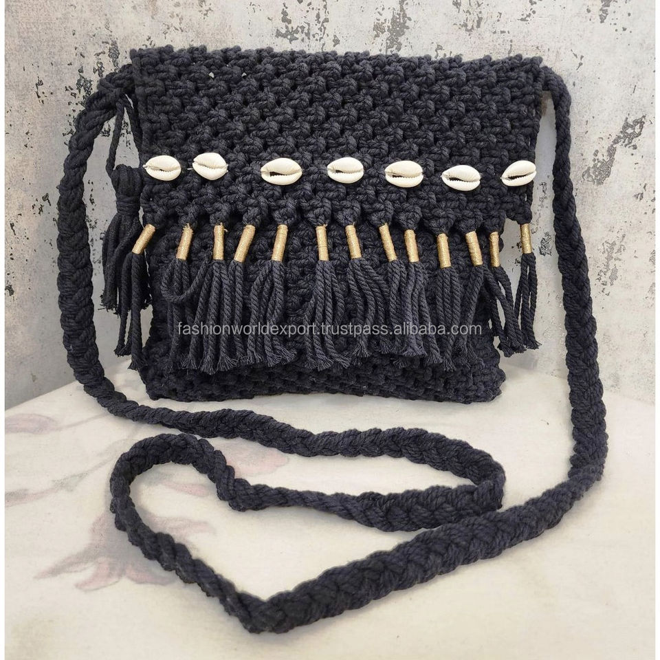 Bolso de ganchillo de fibra natural personalizable con correa larga trenzada y cuentas de concha Bolso de hombro hecho a mano de inspiración vintage para mujer