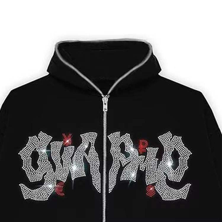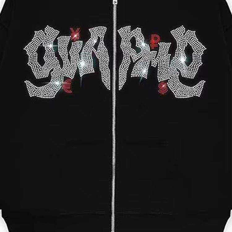 Personalizable Nuevo Diseño Rhinestone Sudaderas Streetwear Estilo Invierno Algodón Hombres de gran tamaño Rhinestone Sudadera con capucha