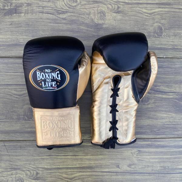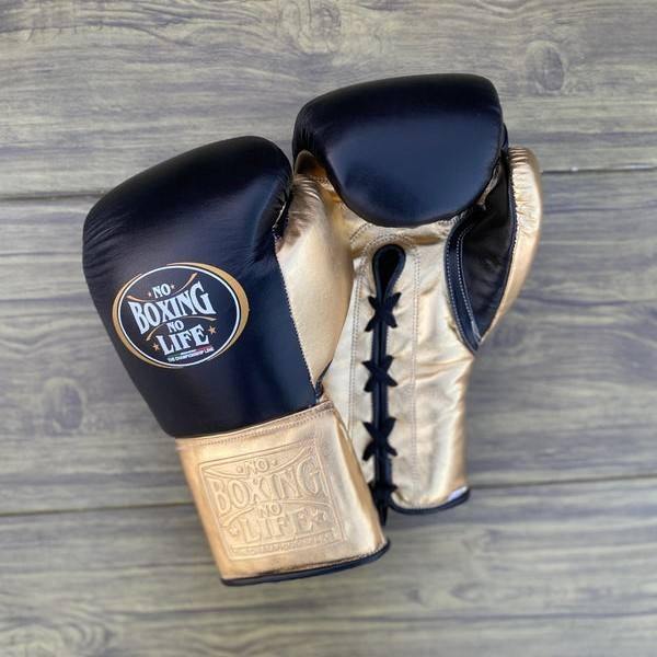 Conjunto de Sparring Personalizable 'No Boxing No Life', Conjunto de Sparring de Boxeo de Cuero Real de Alta Calidad, Conjunto Personalizado Negro y Dorado