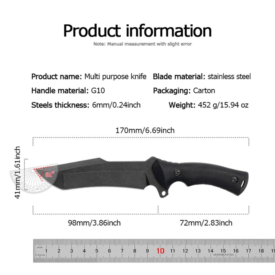 Cuchillo de Caza y Camping Personalizable OEM de Grado Profesional para Exteriores, Hoja Recta, Borde Dentado Reforzado, Acero Inoxidable, Mango G10