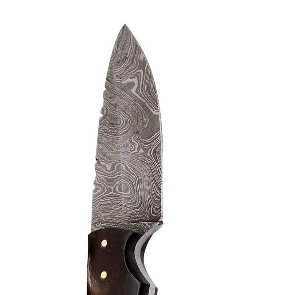 Personalizable OEM hecho a mano Damasco acero Skinner cuchillo DIY para caza Camping uso al aire libre cuero vaina Bowie cuchillos de combate