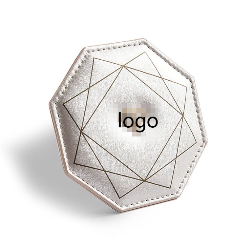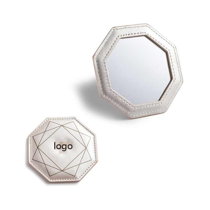 Espejo de Bolsillo Personalizable Octagonal Blanco con Impresión UV en Cuero PU de una Sola Cara para Mujer