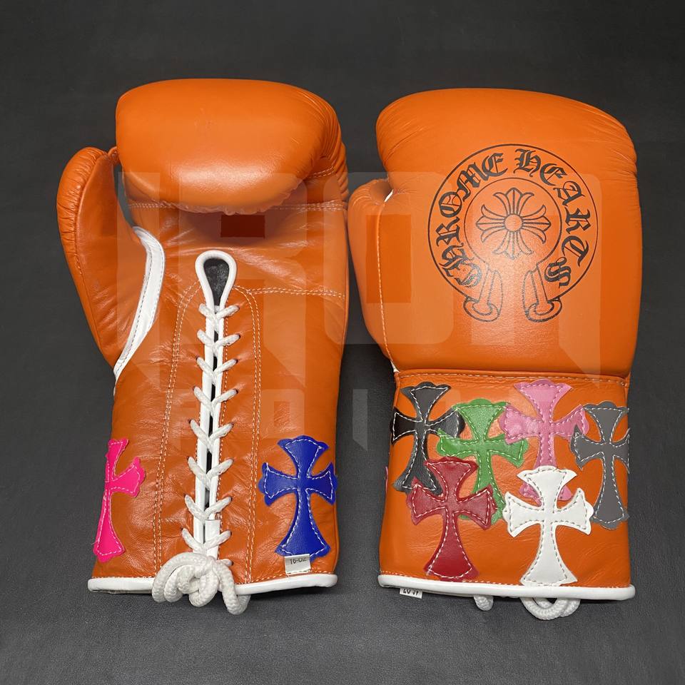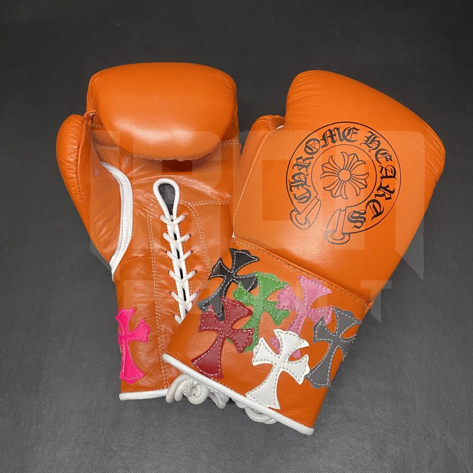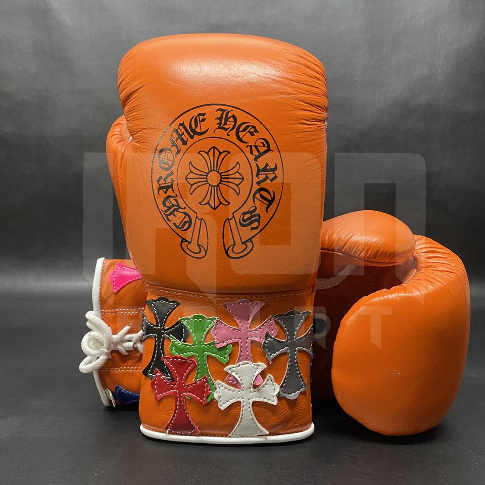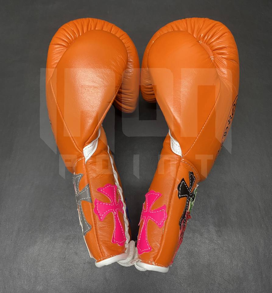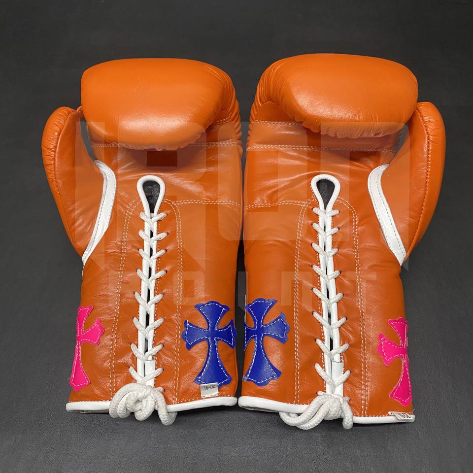 Guantes de Boxeo Personalizables Color Naranja con Cordones Dorados, Cuero Vacuno de Primera Calidad, Acolchado Grueso de 4 Capas, Transpirables y que Absorben la Humedad