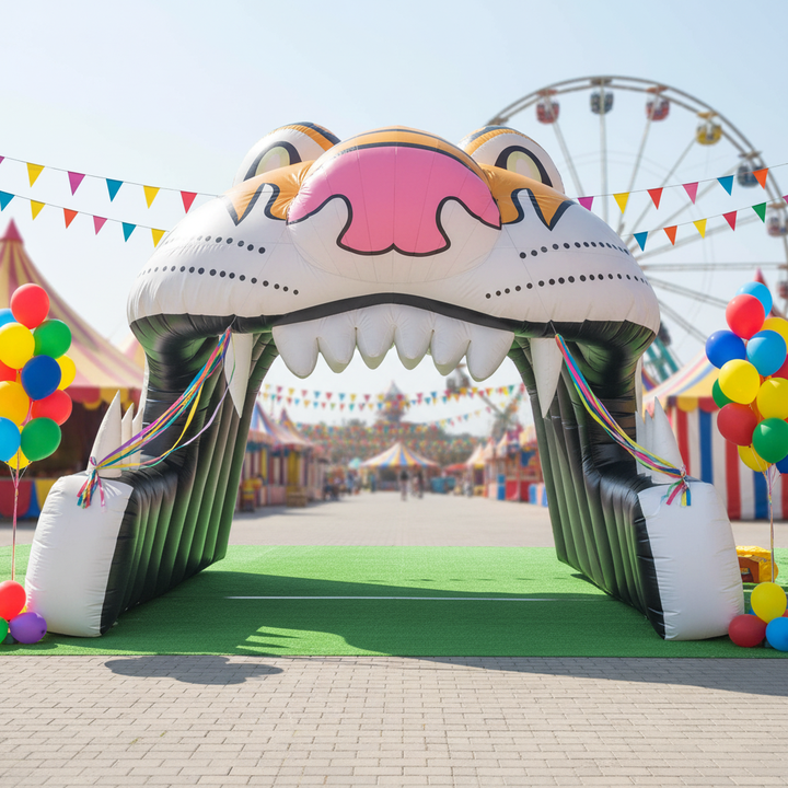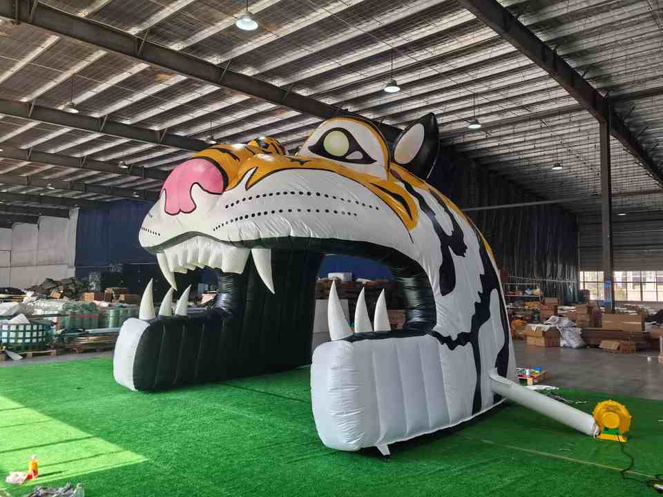 Carpa Inflable de PVC Personalizable para Exteriores con Forma de Túnel de Tigre para Publicidad y Fiestas, con Arco, Cabeza de Tigre y Soplador de Aire Disponible
