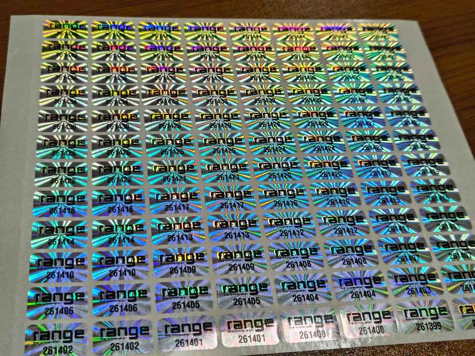 Contra la falsificación, Holográfico, A prueba de agua, A prueba de manipulaciones, ANULADO si se retira, Personalizable