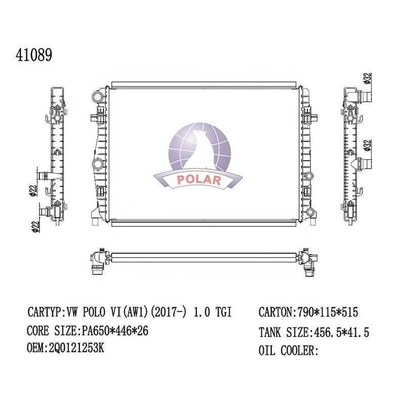 Radiador Personalizable de PA66 GF30 para Skoda Fabia Scala Kamiq Ibiza 2017- Accesorios 606723 2Q0121253K 2Q0121253A 2Q0121253L