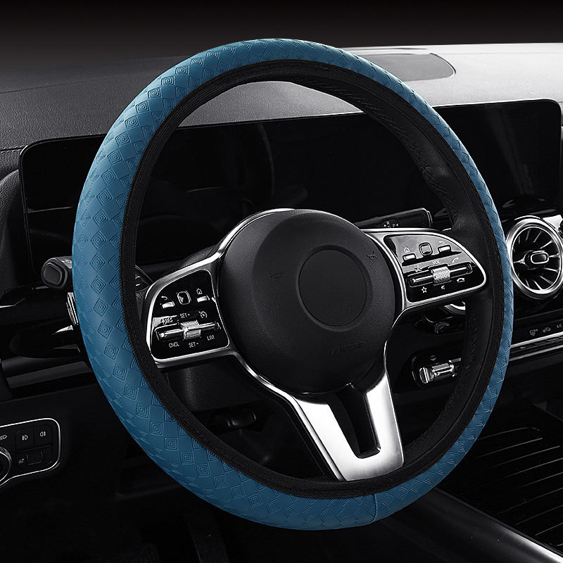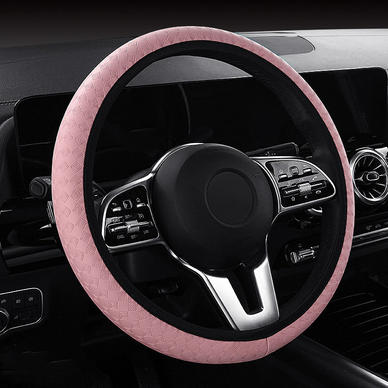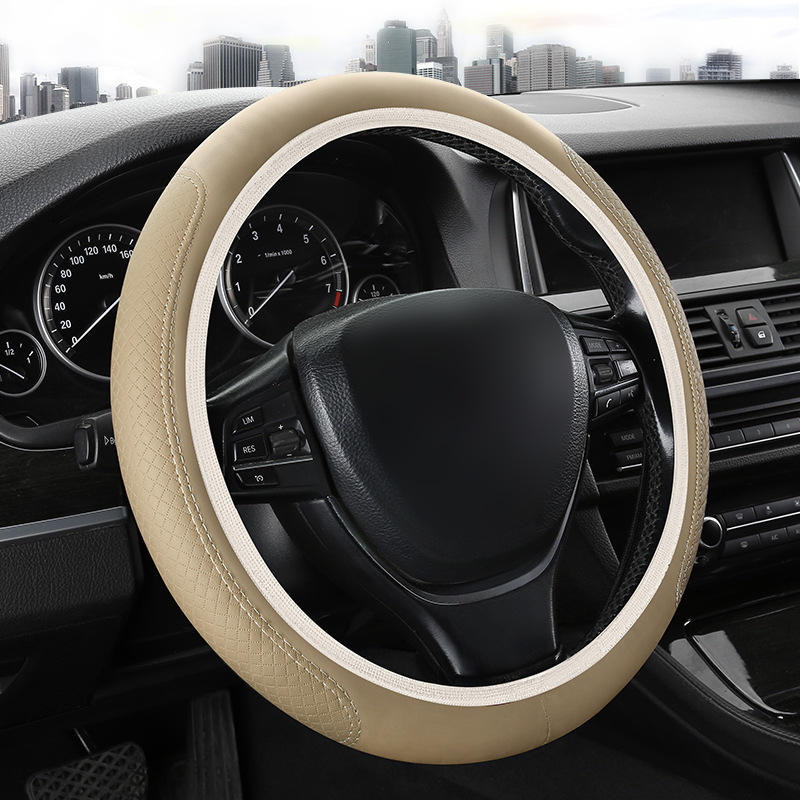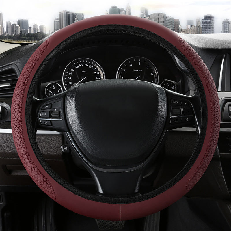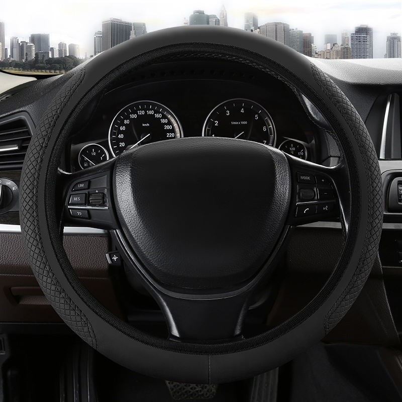 Cubierta de cuero personalizable para volante de PU, anticongelante, transpirable, antideslizante, diseño de rombo de diamante de rejilla, sin goma