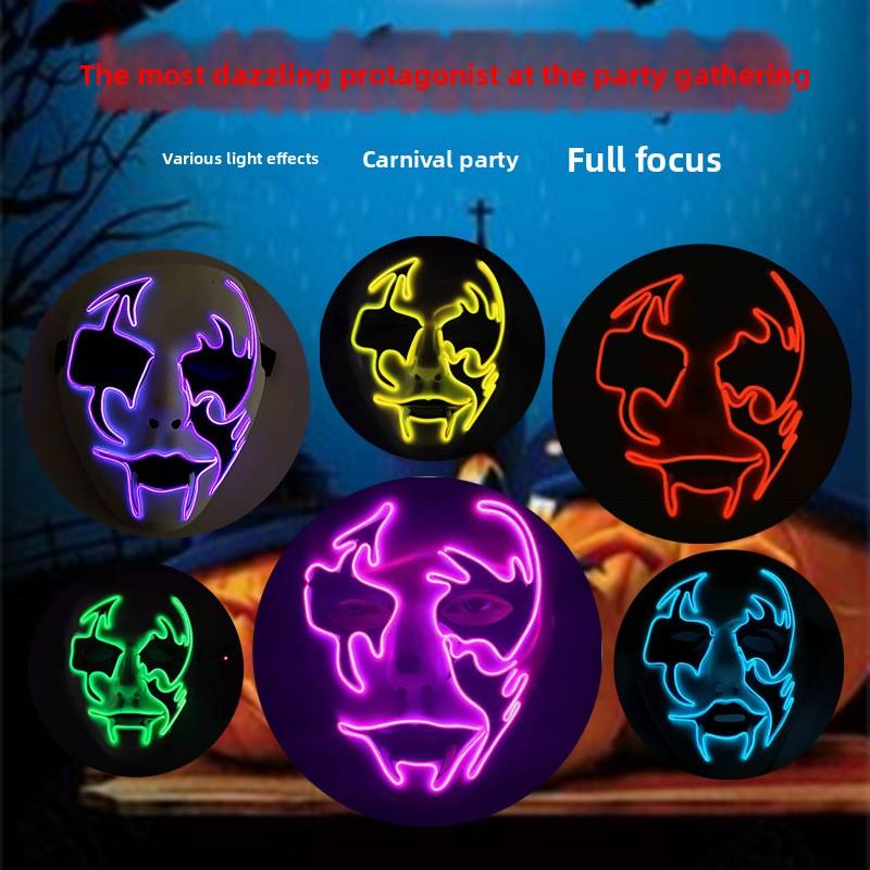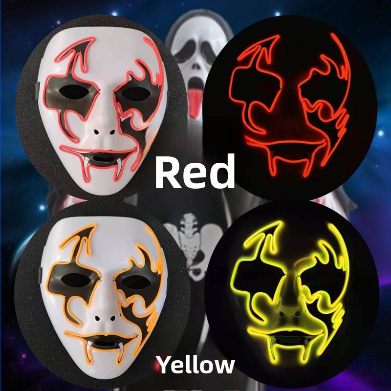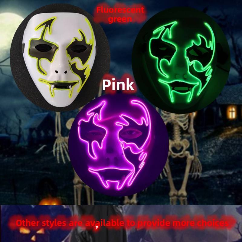 Máscara de Halloween LED de PVC Personalizable - 9 Colores, Cobertura Facial Completa, Baterías Incluidas para Fiestas de Terror y Regalos