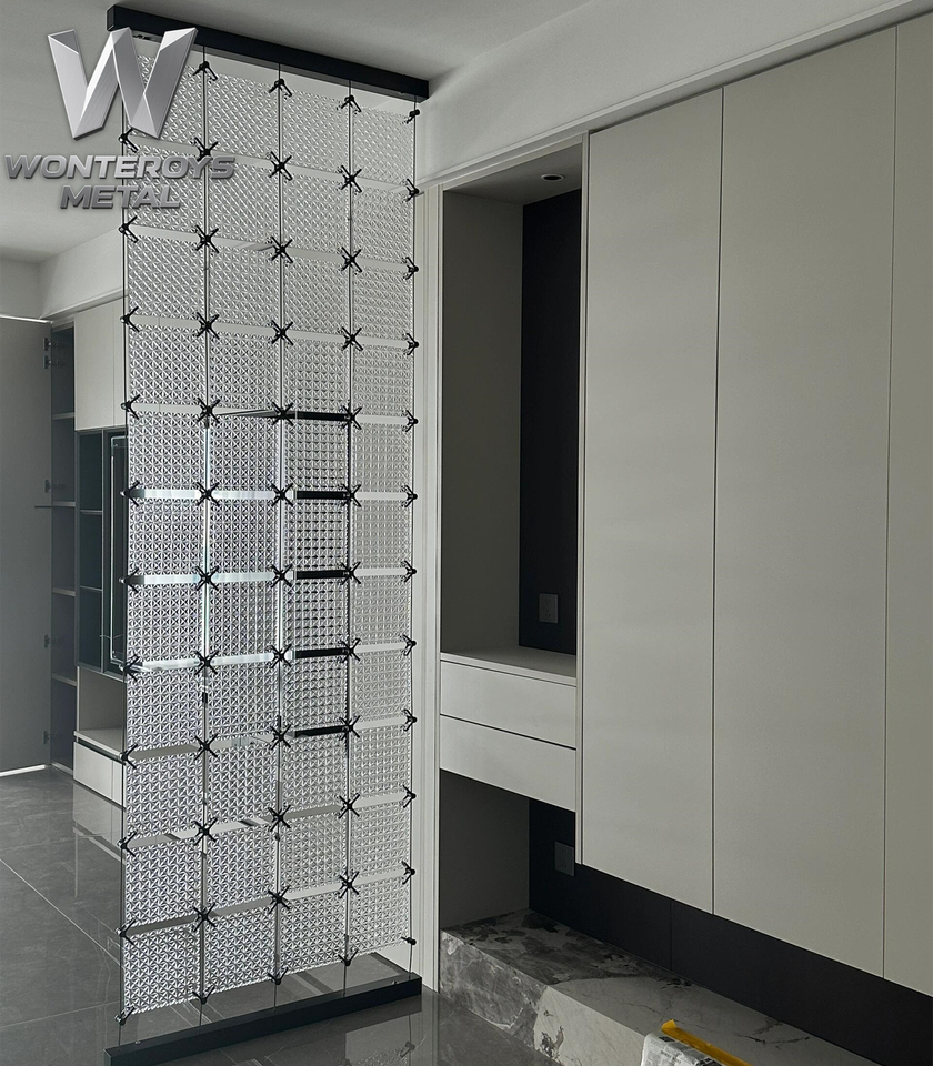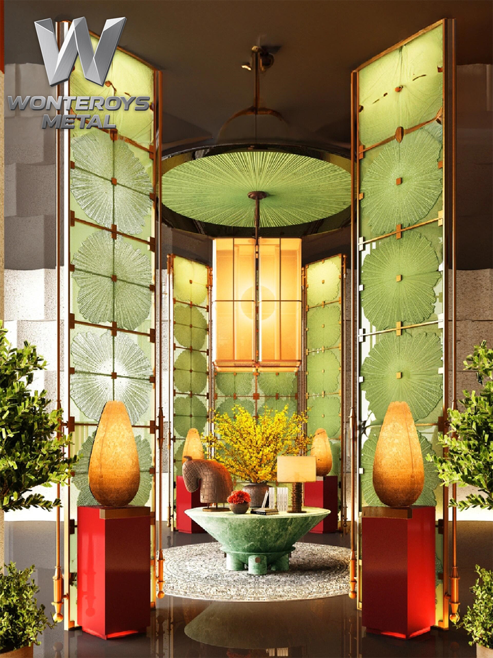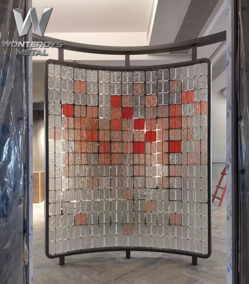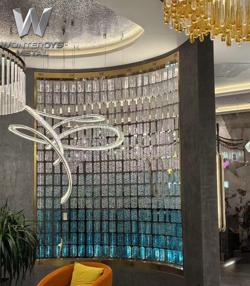 Divisor de Espacios Personalizable con Marco de Acero Inoxidable PVD, Pantalla de Cristal Colorida, Diseño de Partición para Hoteles y Restaurantes