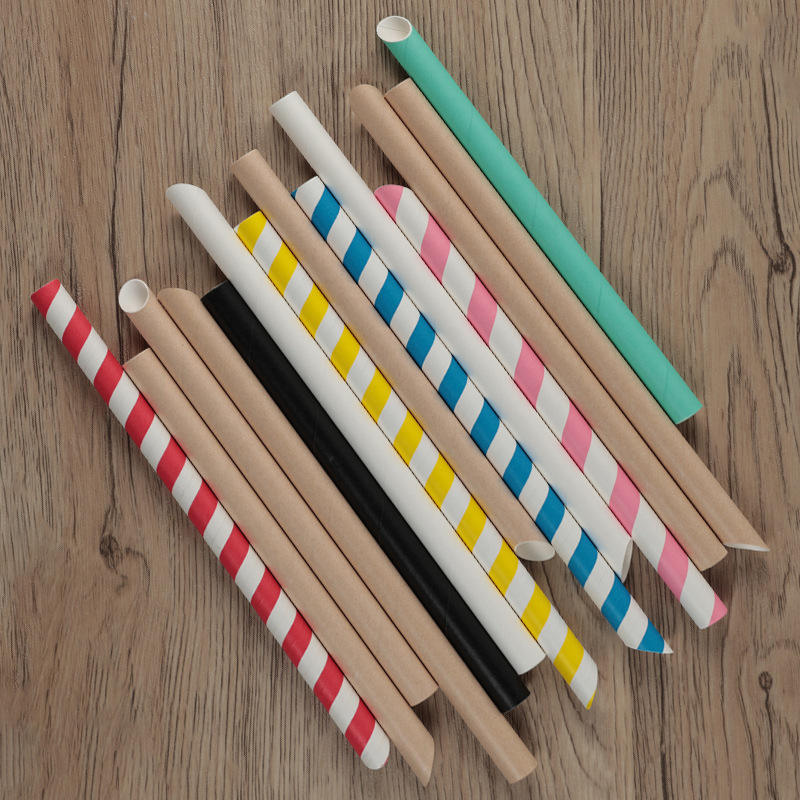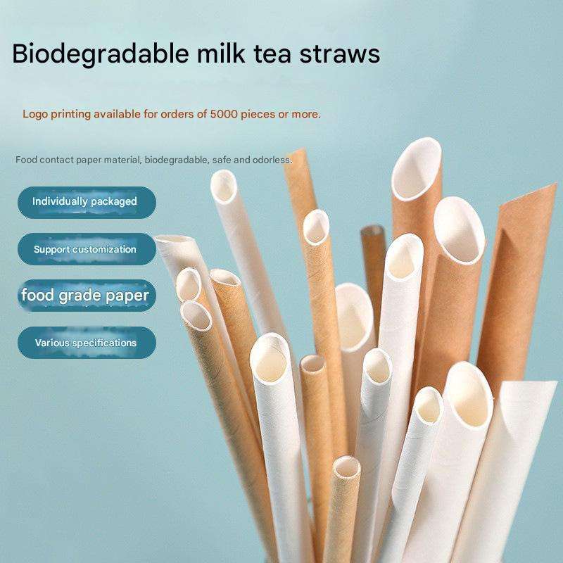 Pajitas de Papel Desechables Personalizables con Impresión de Logotipo, Diámetro de 6 mm, 8 mm, 10 mm, 12 mm, Longitud de 197 mm, 200 mm, 230 mm