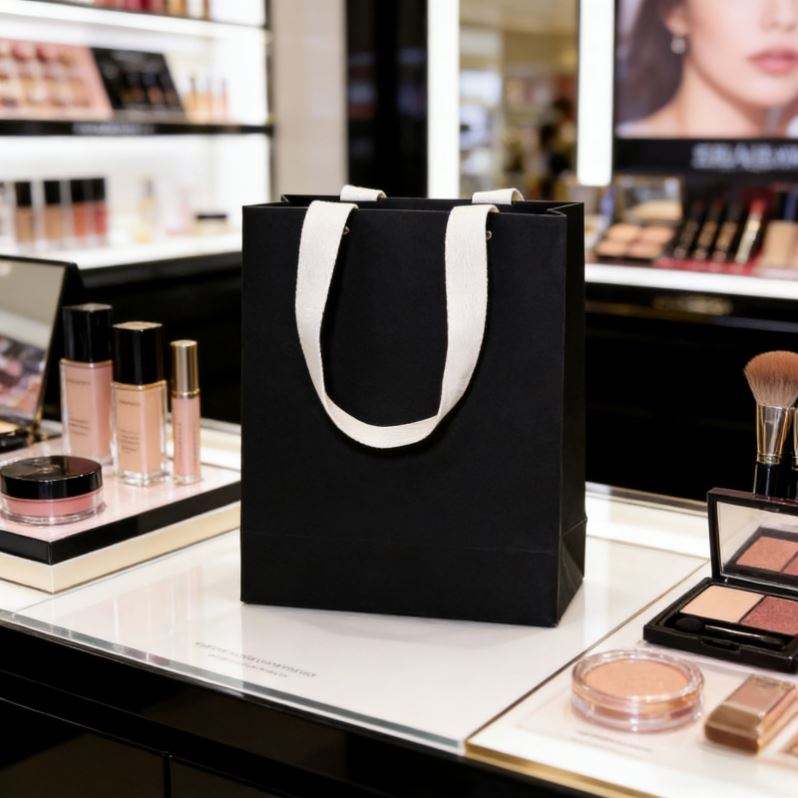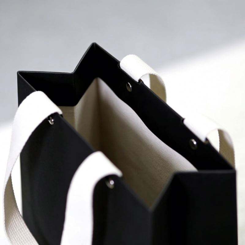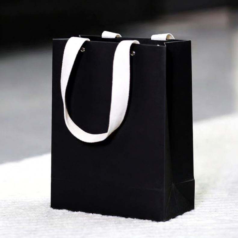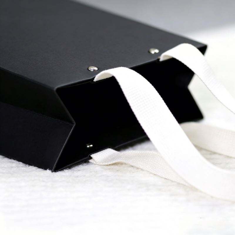Bolsa de Compras de Cartón Negro con Diseño Personalizable, Remaches, Asas de Hilo de Algodón y Reciclable para Uso en Comercios Minoristas