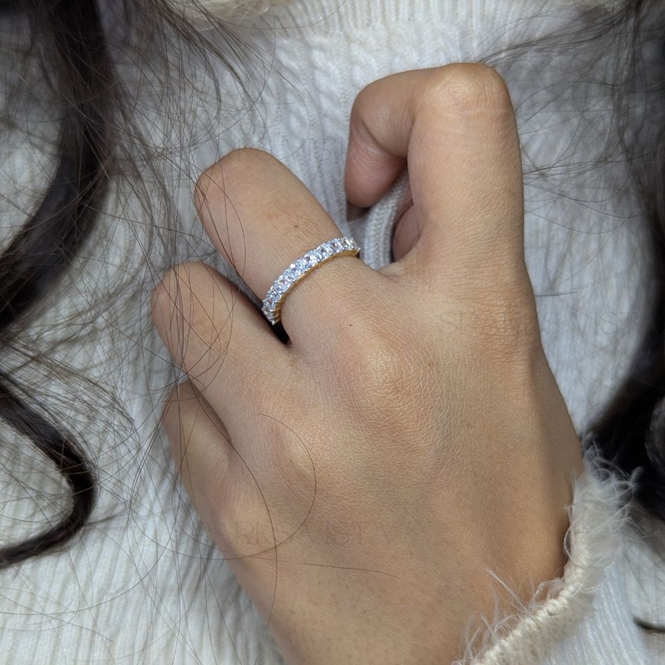 Luxury Minimalist Full Eternity Moissanite Ring Elegant Wedding Band with Continuous Stones Classic Slim Ring with Premium Look
