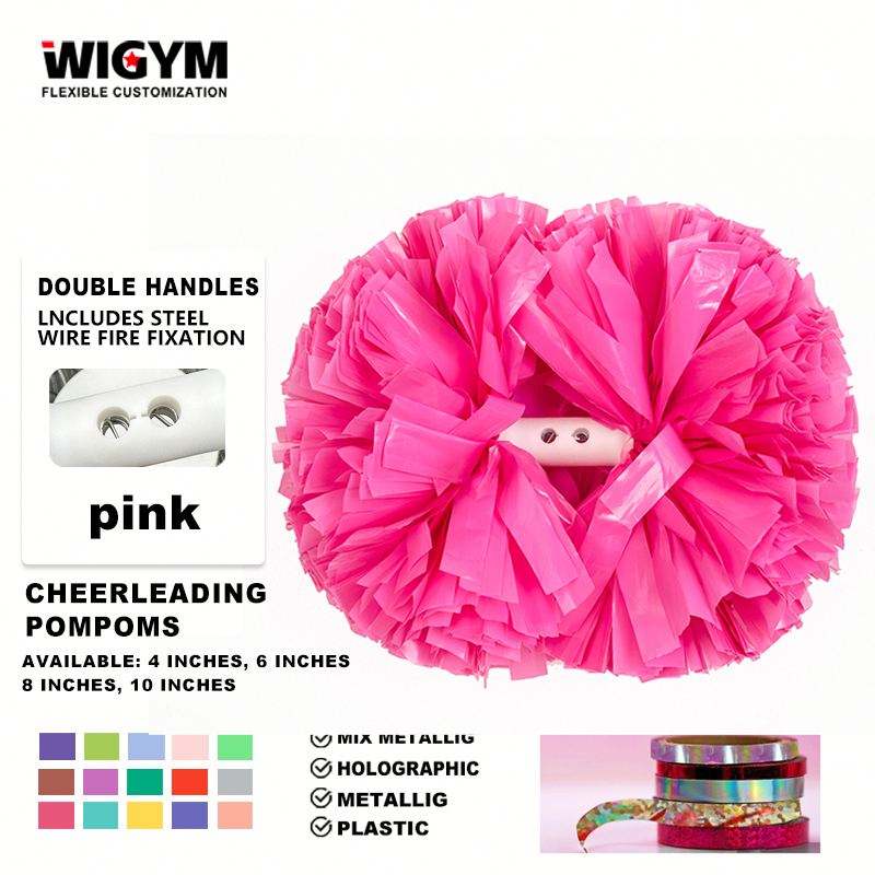 Pompones personalizables de plástico rosa para porristas Material PE respetuoso con el medio ambiente para deportes y entretenimiento