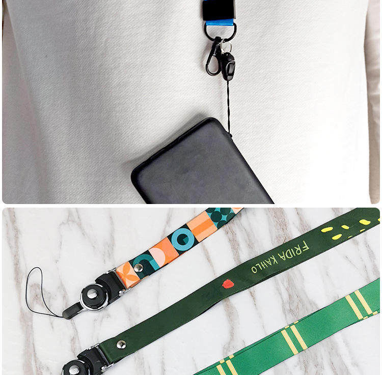 Cordón de poliéster personalizable para teléfono móvil, gancho de correa larga y corta, patrón de dibujos animados, impresión Offset para accesorio de licencia de trabajo