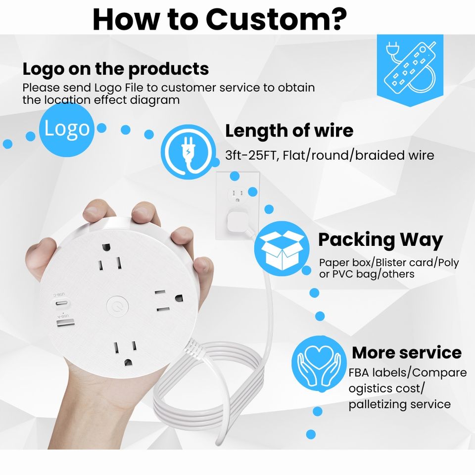 Tira de alimentación personalizable con logotipo 3 salidas de CA USB PD 20W Protección contra sobretensiones de carga rápida para revendedores