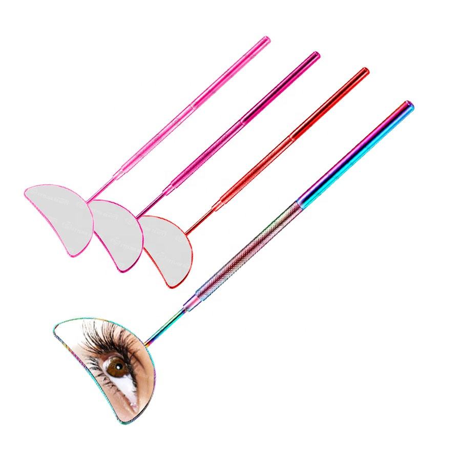 Espejo de extensión de pestañas postizas de acero inoxidable con etiqueta privada personalizable con mango hueco y Punta puntiaguda logotipo personalizado