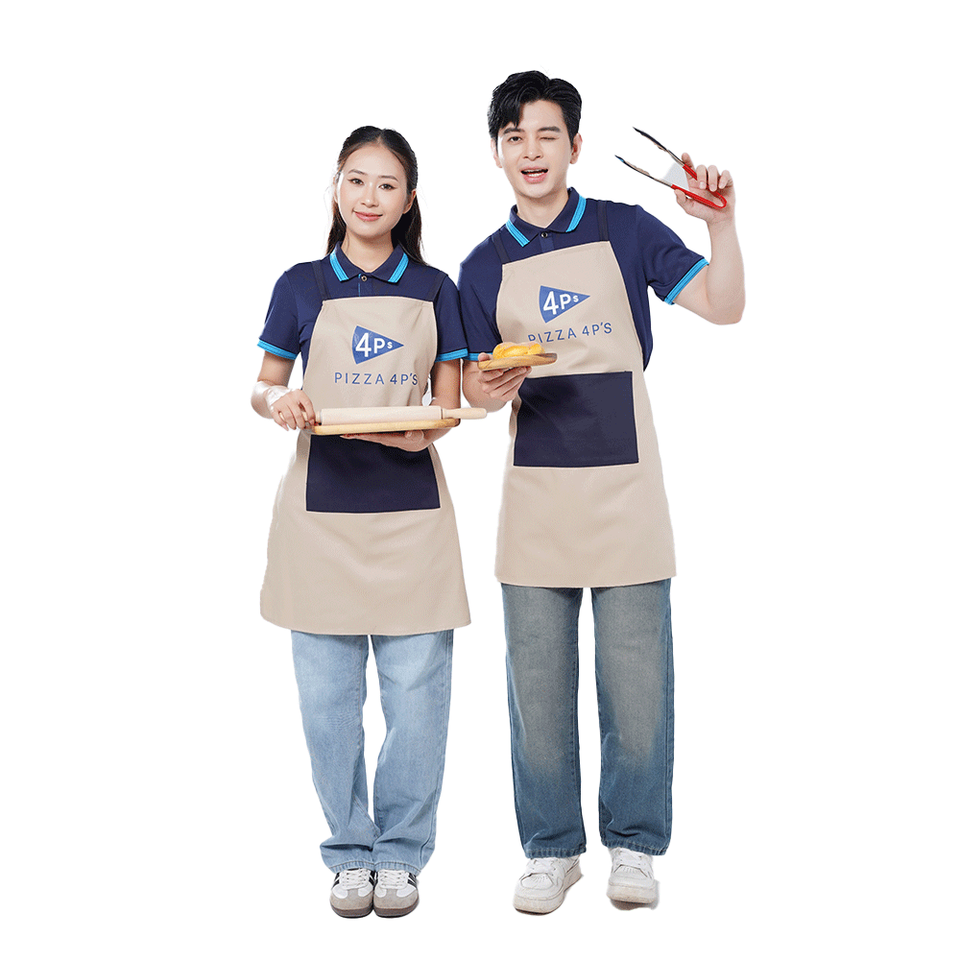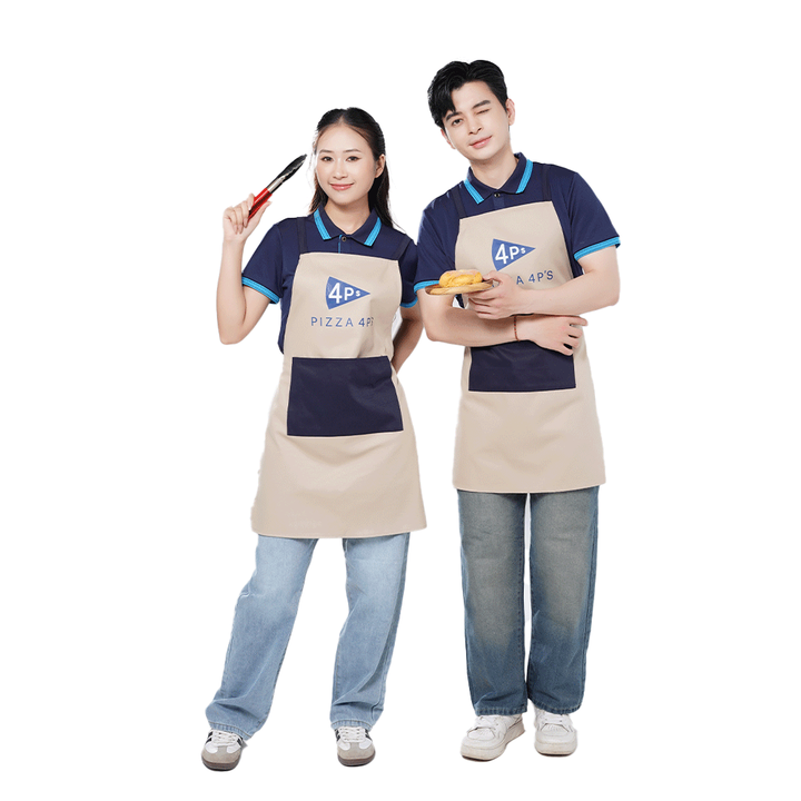 Conjunto de Uniforme Personalizable para Personal Promocional, Camisa Polo de Poliéster Tejido y Delantal para Cafetería, Restaurante, Panadería, Ropa de Trabajo