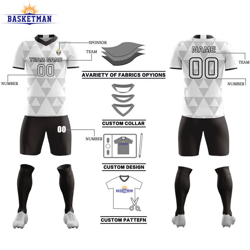 Uniformes de Fútbol Personalizables de Secado Rápido para Adultos, Impresión por Transferencia de Calor, Conjunto de Camisetas de Fútbol en Blanco, Logotipo, Corte Automatizado, Servicio OEM