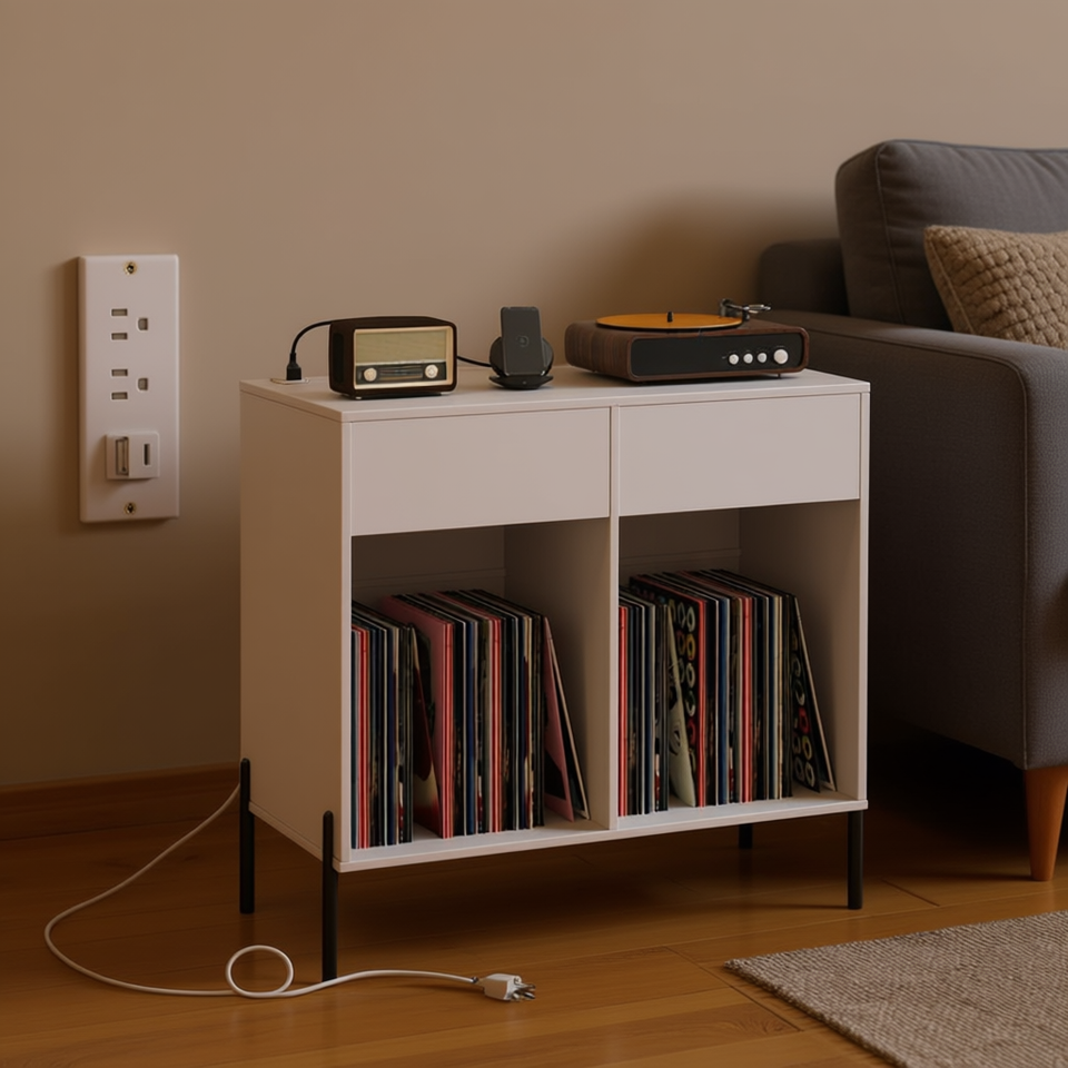 Soporte de Almacenamiento para Tocadiscos, Compartimentos para Vinilos, Patas de Metal, Muebles para Sala de Estar
