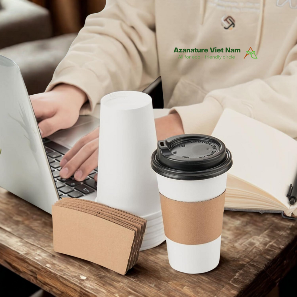 Funda de taza de café de papel Kraft reciclable personalizable para bebidas calientes con logotipo personalizado