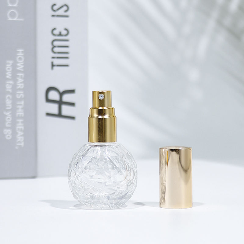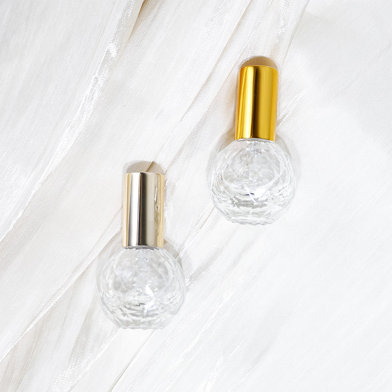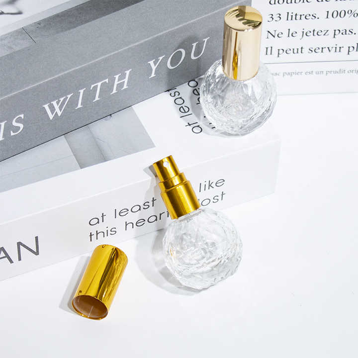 Botella de Vidrio Redonda de 10 ml con Tapa de Rosca, Personalizable y Reutilizable, Mini Atomizador de Perfume de Vidrio Transparente con Tapa Dorada