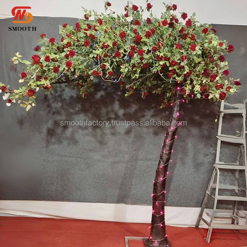 Nombre del producto:Árbol de flores artificiales de hoja verde y rosa roja para boda
