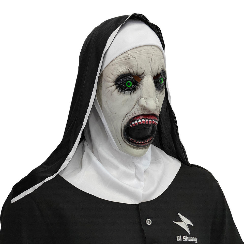Máscara de Látex de Monja Terrorífica Personalizable con Boca Abierta, Máscara de Fantasma de Terror para Halloween, Cosplay, Fiesta, Broma Espeluznante