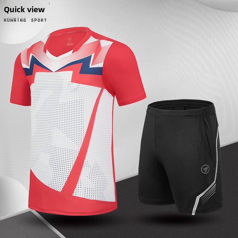 Conjunto deportivo de manga corta personalizable, cómodo, transpirable, para correr rápido, traje de bádminton para hombres y mujeres, logotipo frontal, ropa de tenis OEM