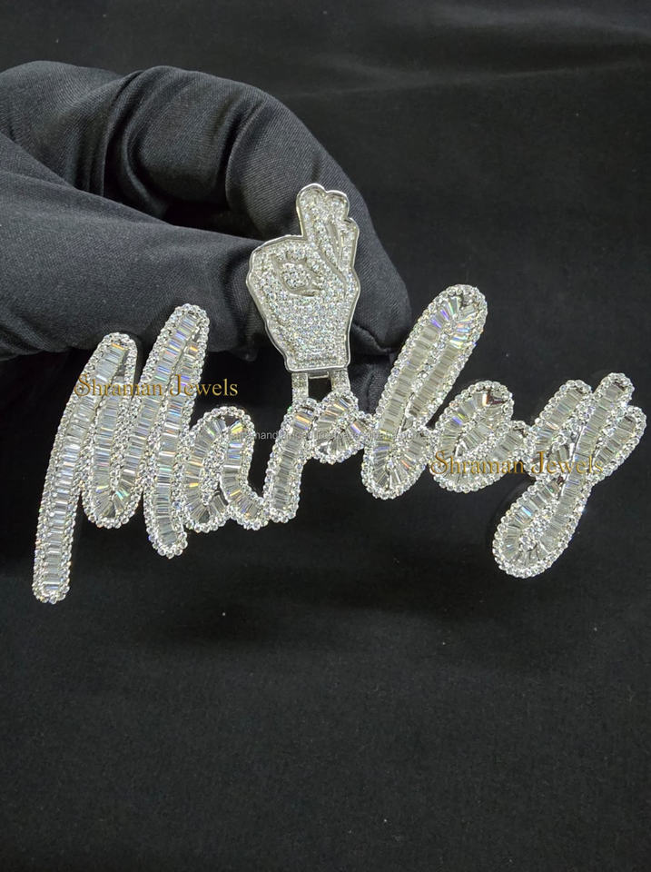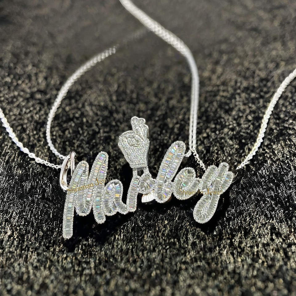 Colgante Personalizable de Plata 925 con Inicial de Letra, Nombre, Diamantes Moissanite Baguette Cursivos, Clásico, Regalo de Aniversario