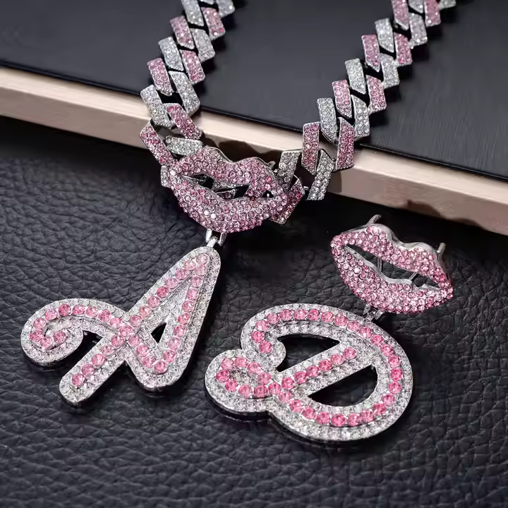 Collar con colgante de aleación de hip hop Chapado en plata/oro personalizable con ajuste de garra de nombre cursivo de diamante