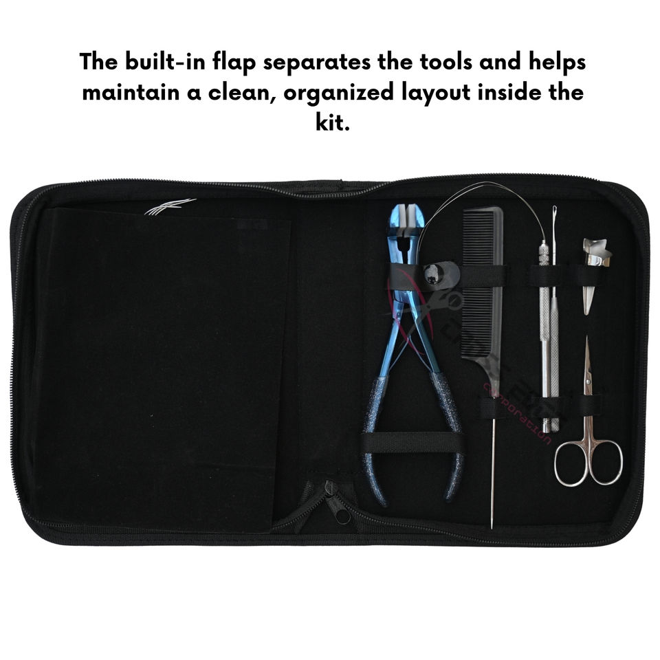 Palabras clave:Kit de herramientas para técnico de extensiones de cabello plateado con aplicador de cinta azul