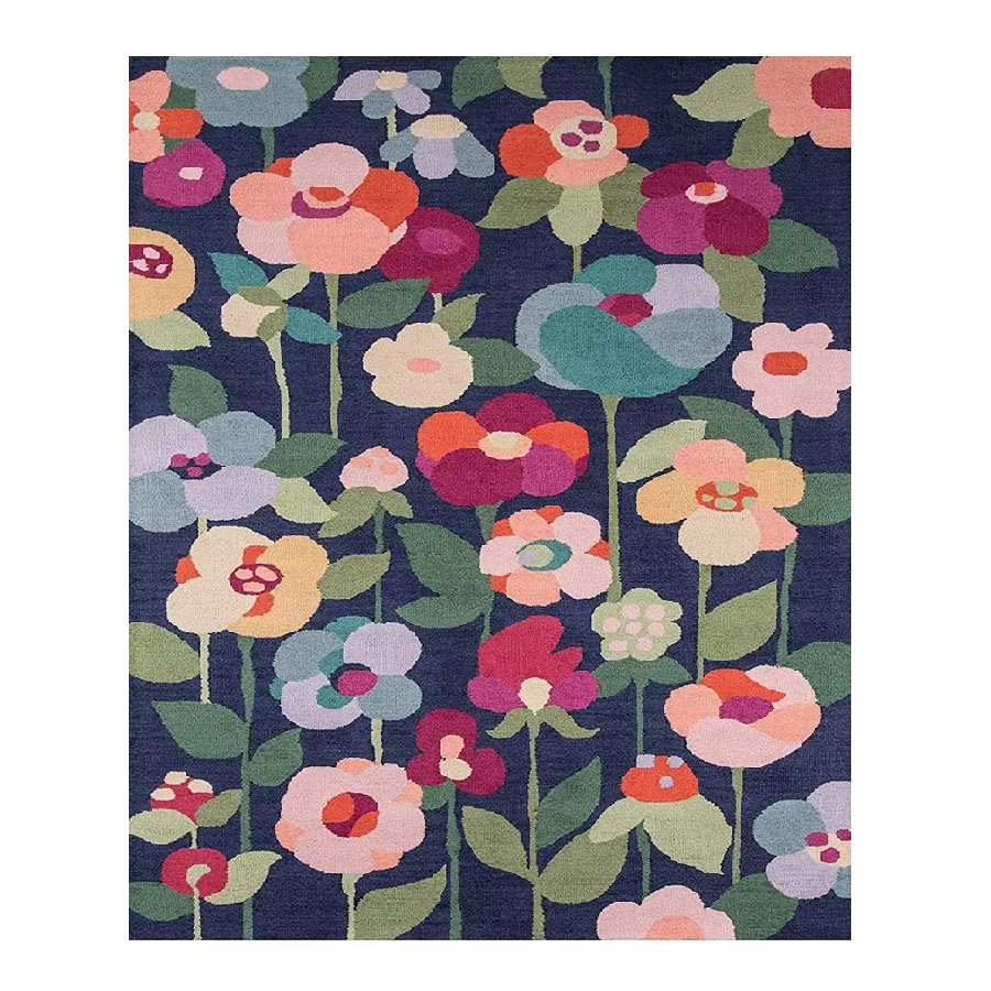Tamaño personalizable 8*10 Estilo moderno Lana Flor azul Loop Pile Alfombra 100% Lana para el piso del hogar