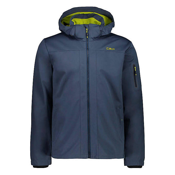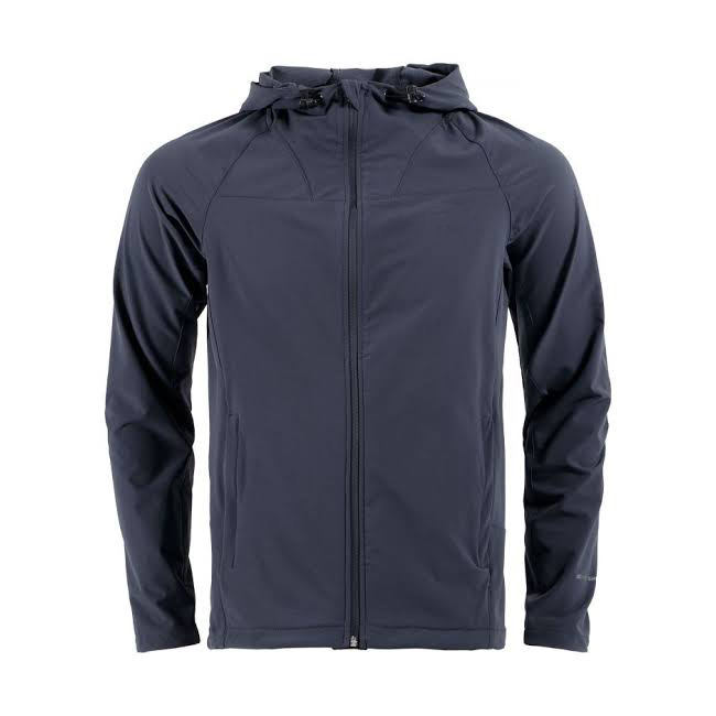 Chaqueta Softshell de hombre azul marino con logotipo de tamaño personalizable capucha de cuello alto de alta calidad transpirable duradera para servicio OEM