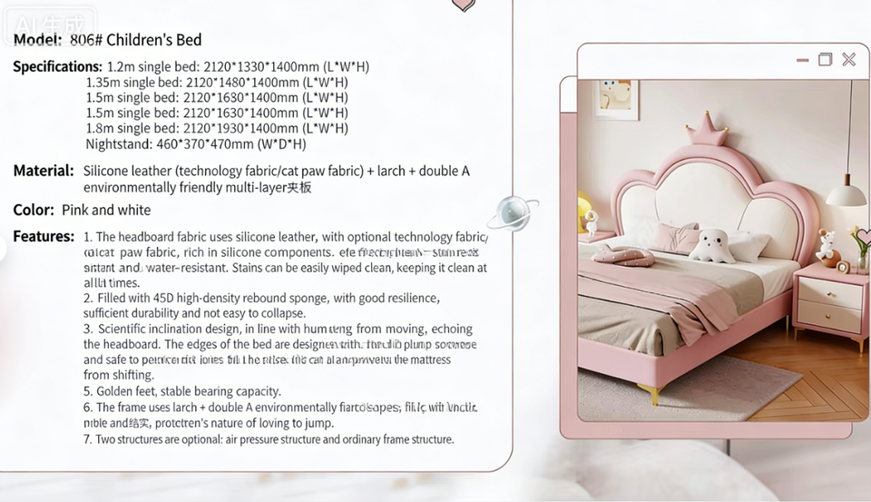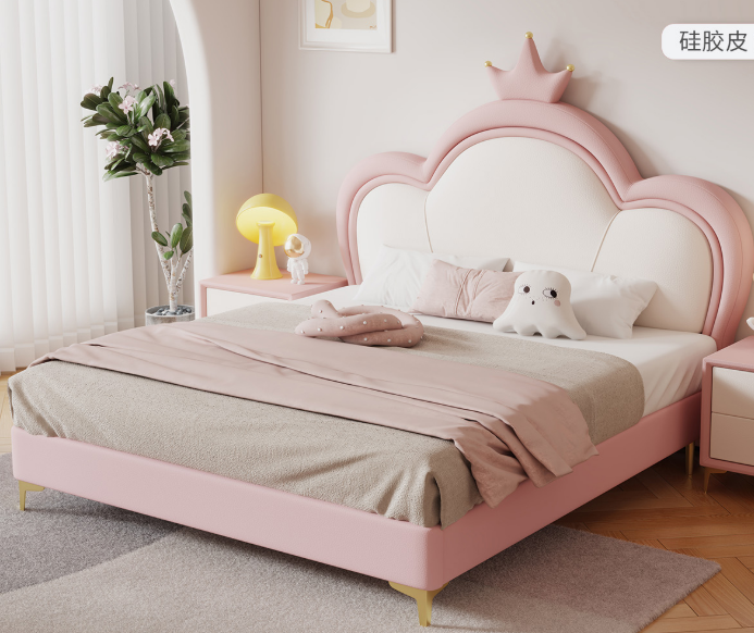Base de Cama Individual de Pino con Diseño de Garra de Gato, Tapizada en Cuero de Silicona, Tamaños Personalizables (1.2m-1.8m), Estilo Princesa Nube para Niñas