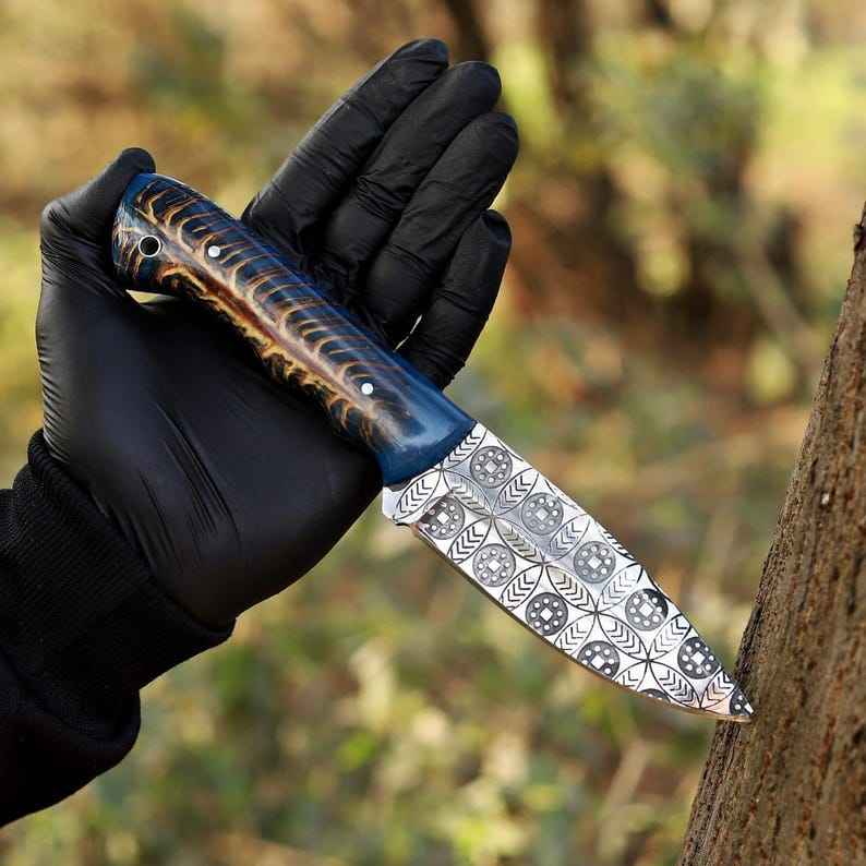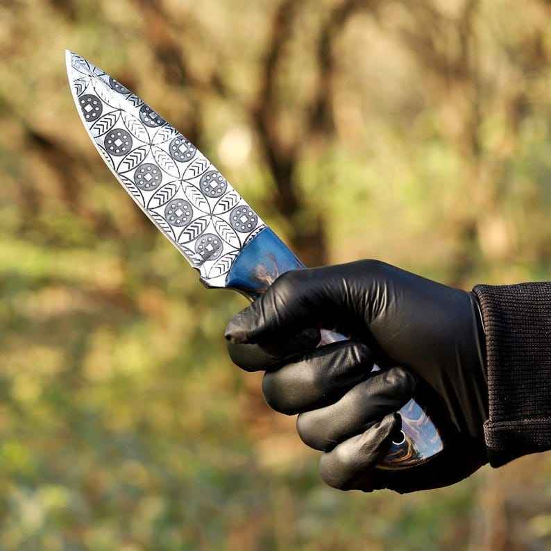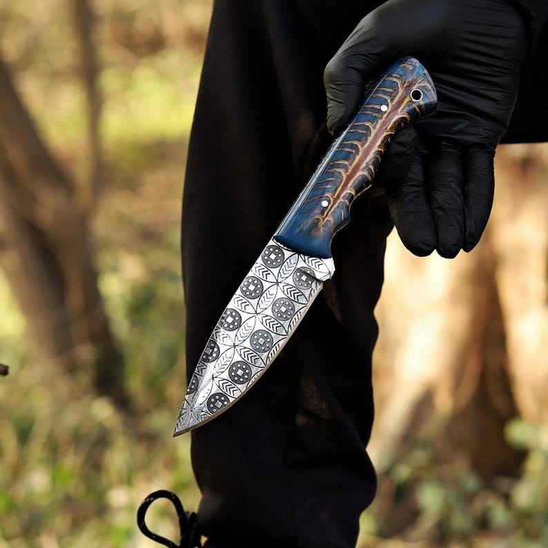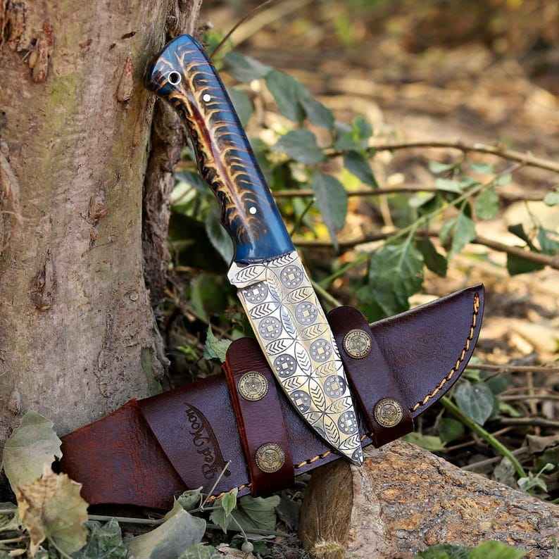 Cuchillo de desollado personalizable con patrón de gota de lluvia, mango OEM de alto contenido de carbono, espiga completa, para caza y desollado, con funda de cuero, industrial