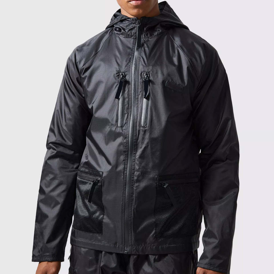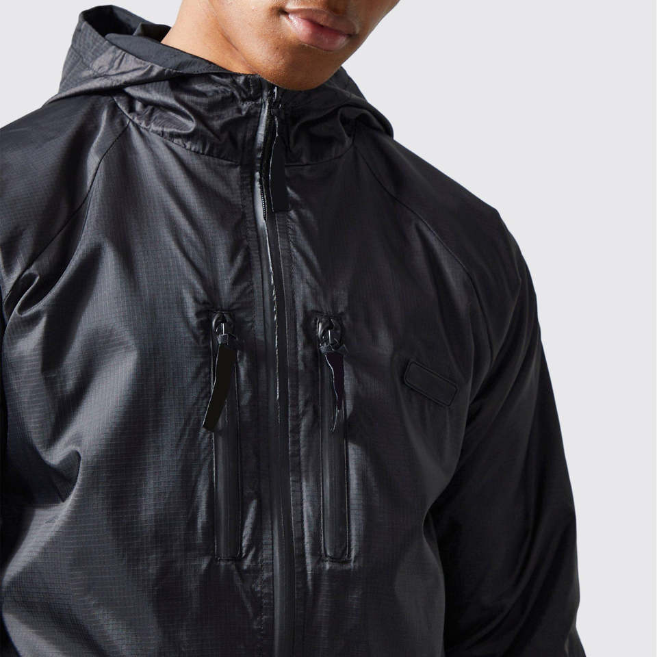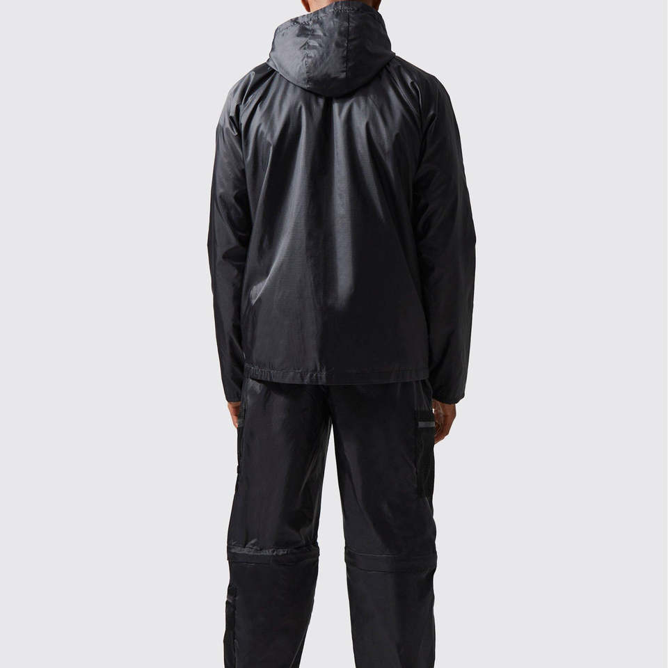 Conjuntos de Cortavientos Raglan Personalizables en Negro Sólido, Estilo Deportivo con Capucha, Manga Larga, Transpirables, de Poliéster/Nailon, con Cierre de Cremallera