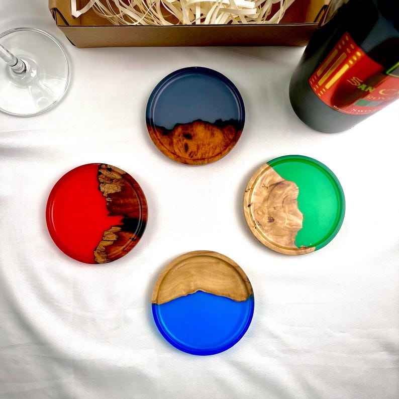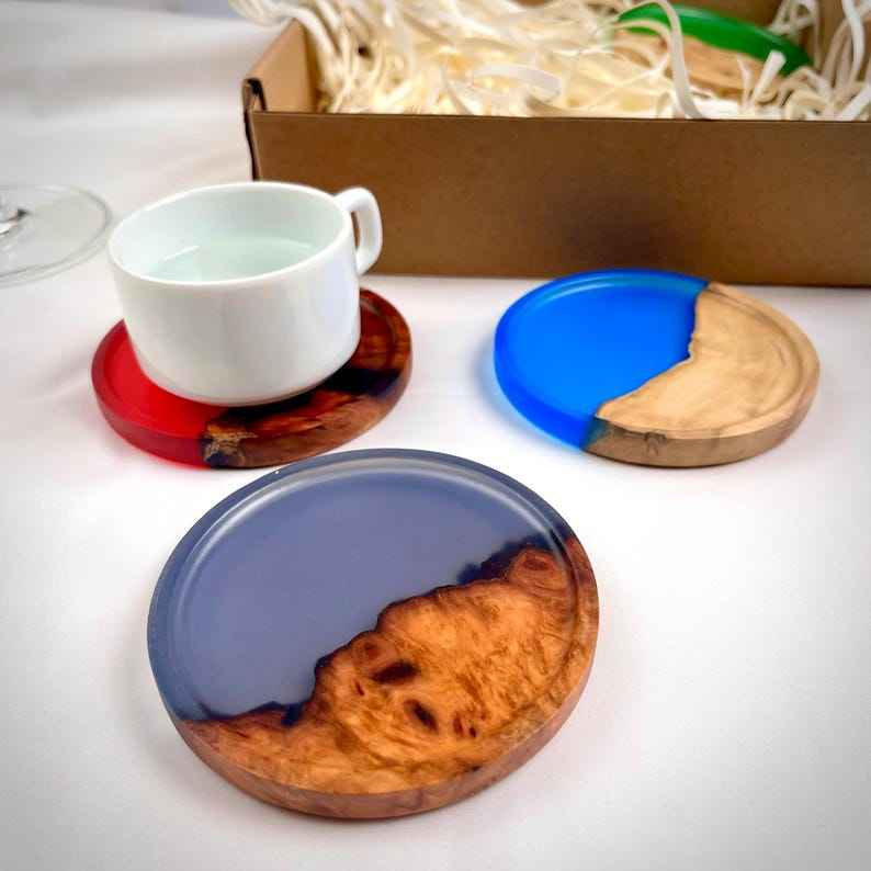 Posavasos de resina de madera epoxi redondo cuadrado personalizable posavasos de taza de té de cristal portátil por Global Exports