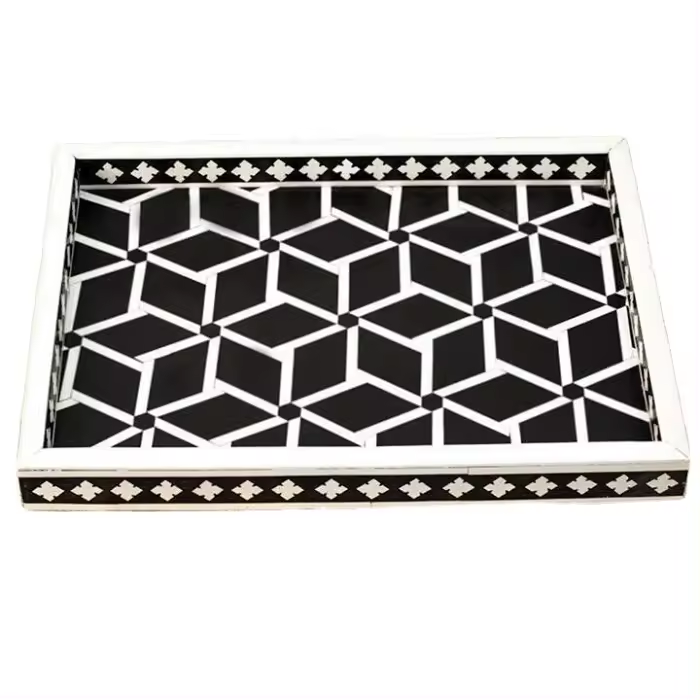 Bandeja de servicio redonda con incrustaciones de hueso hechas a mano en forma de Escudero personalizable para el hogar, Hotel, restaurante, Bar en varios colores por tradebit