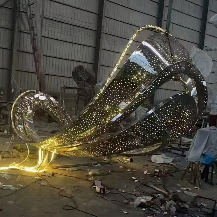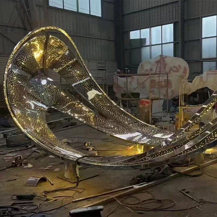 Escultura de luz abstracta de acero inoxidable personalizable Paisajes urbanos y espacios públicos Obra de Arte de metal con técnica de chapado