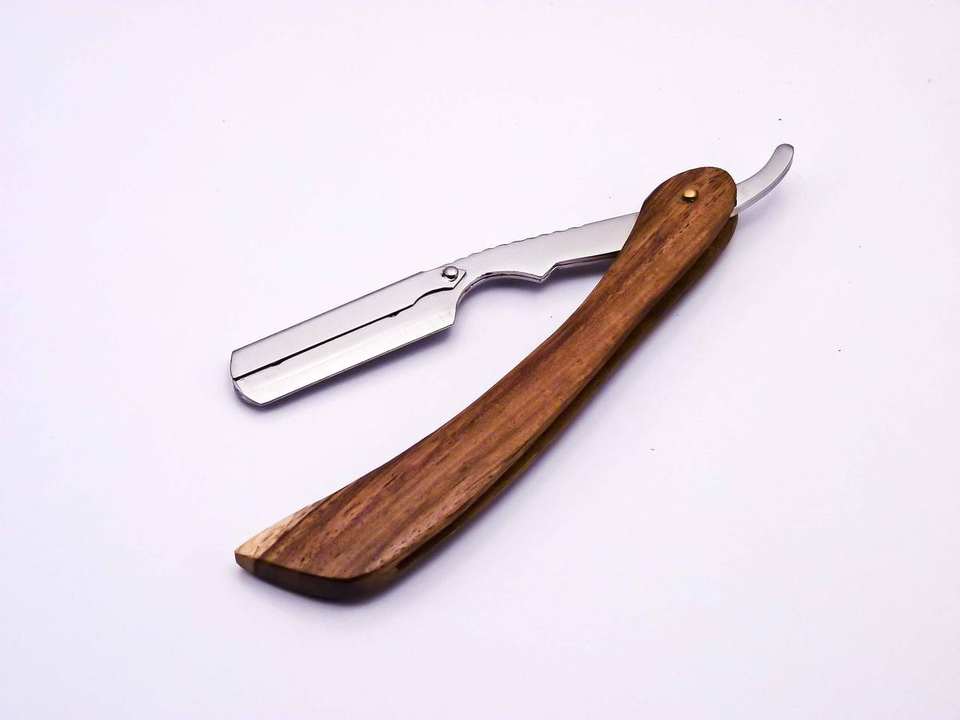 Navaja de Afeitar Recta Personalizable de Acero Inoxidable con Mango de Madera de Palisandro y Hoja Reemplazable