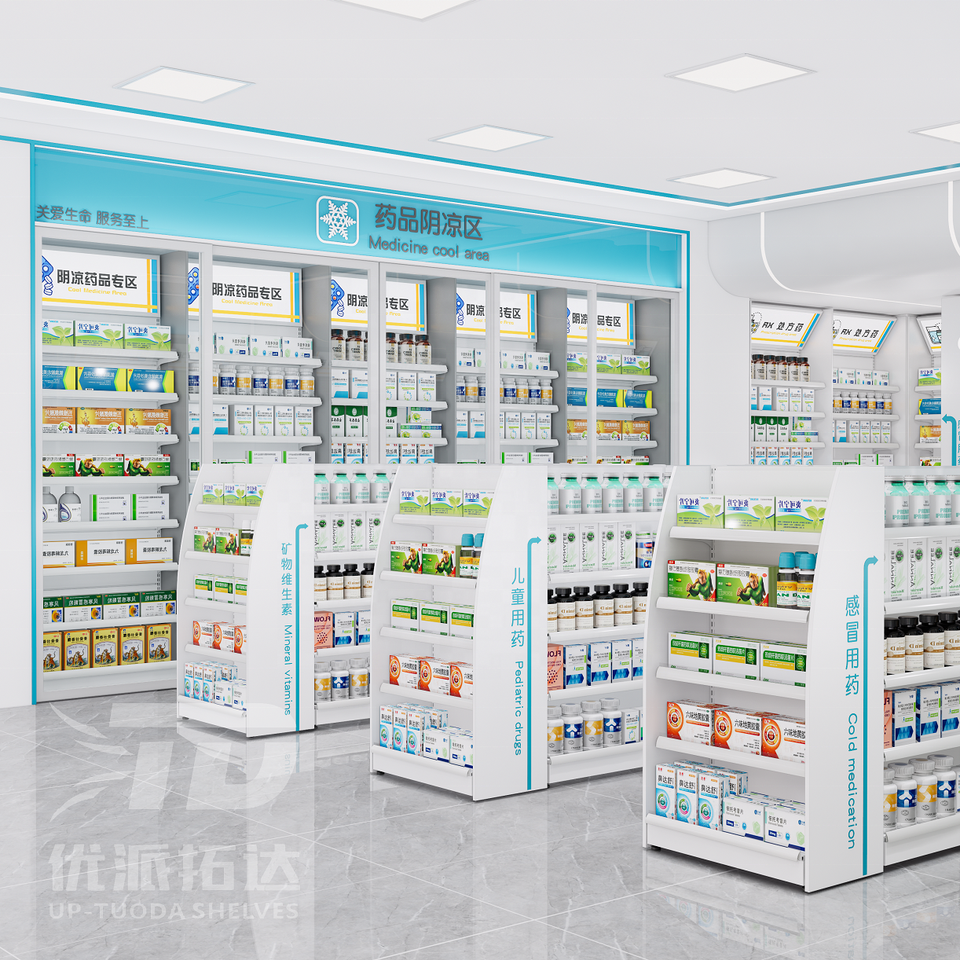 Estantería Plegable de Acero Personalizable para Farmacias - Estantes Ajustables de Una Sola Cara para Exhibición en Supermercados y Medicamentos