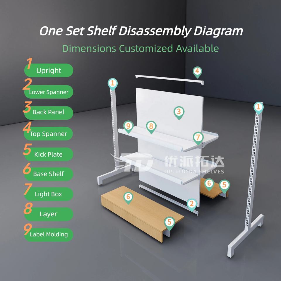 Característica:Ajustable, Protección contra la corrosión, Durable, Fácil instalación, Respetuoso del medio ambiente, Plegable, La tendencia de la moda, Económico, Estantería del supermercado de la góndola