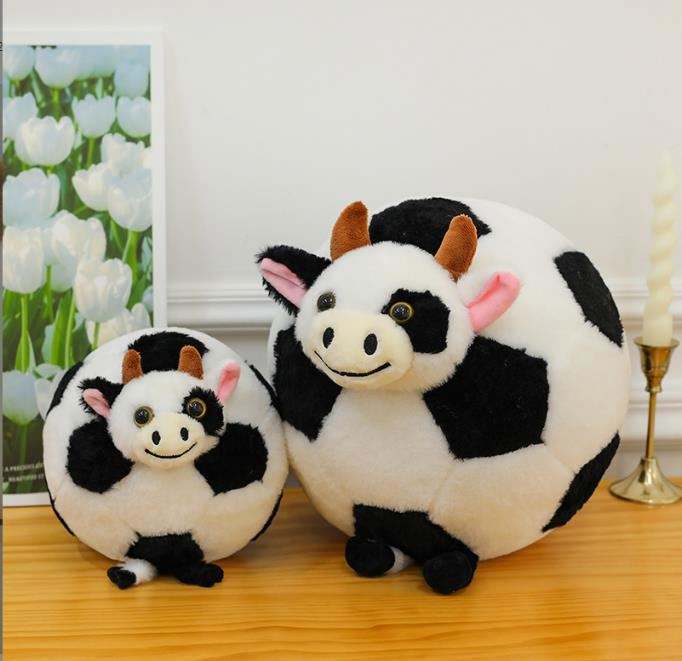 Peluche de Vaca de Fútbol Personalizable, Adorable, Suave, Duradero, con Bordado, Juguete de Peluche, Almohada de Vaca